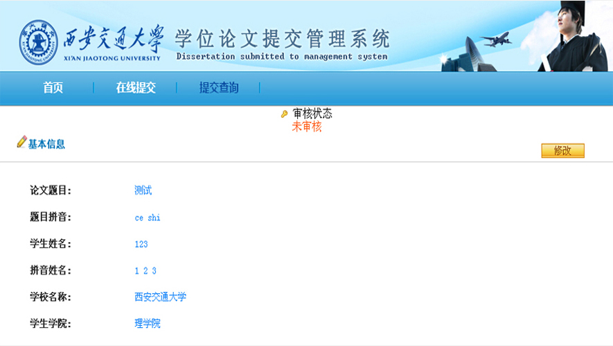 可查询论文审核状态,在审核未通过前可重复修改论文基本信息及论文原文。