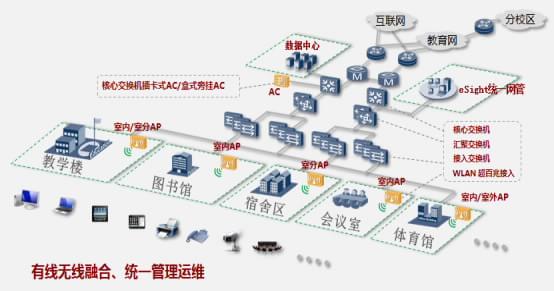 为了应对高校园区网复杂多样的管理诉求,华为推出了eSight有线、无线用户统一管理方案,这是一套有线无线一体化、内容可视化的管理方案,可以实现高校园区网从网络-设备-质量-流量-业务多层体系内容可视化管理,降低校园网管理运维难度,提升运维效率。